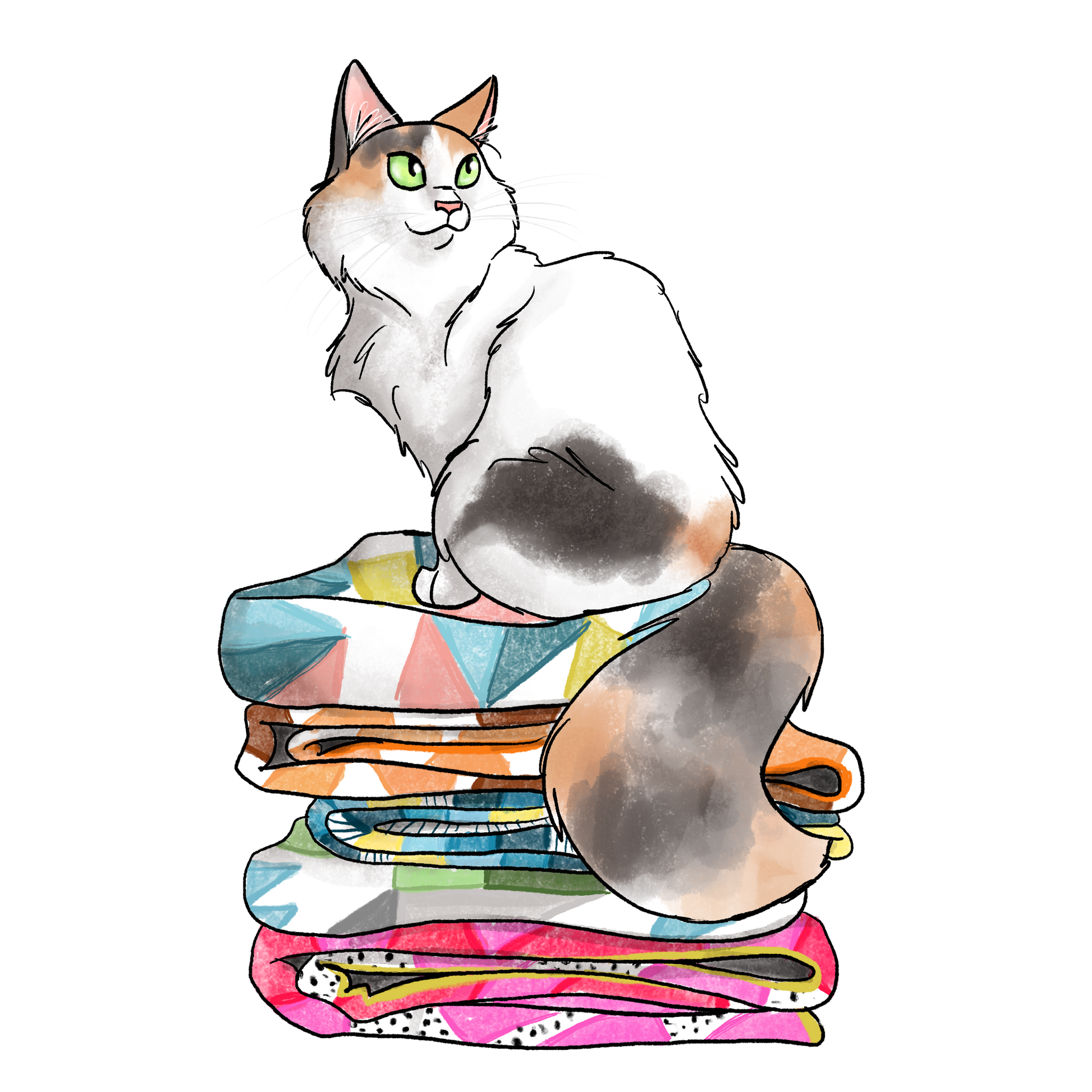 Emma was abandoned in a cardboard box outside the Montreal SPCA, malnourished and terrified of humans. What started as a foster quickly turned into a fail, and over the last eleven years, she has transformed from a timid, fearful cat into a bold and mischievous troublemaker—always on the hunt for fabric to disrupt.