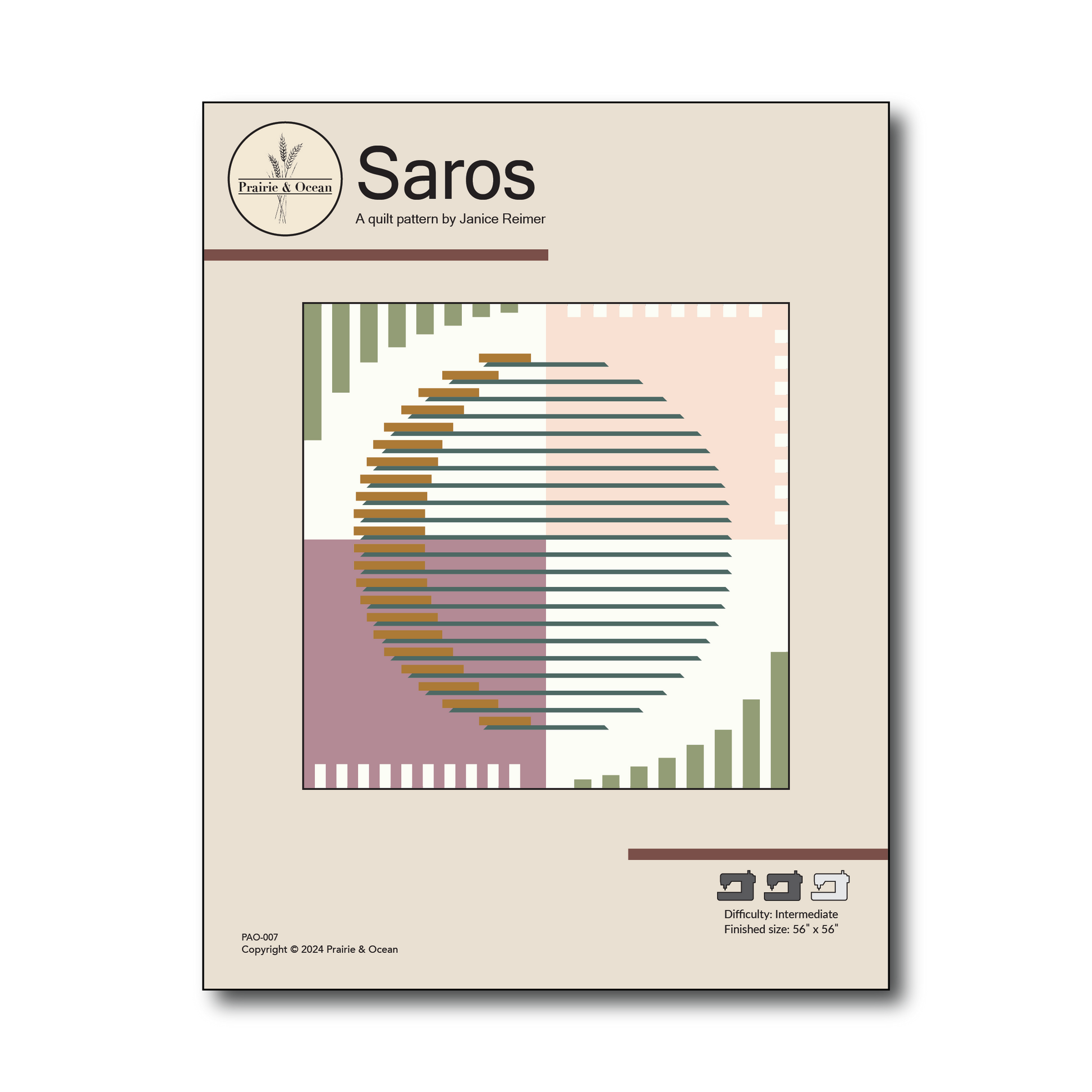The Saros quilt pattern is a modern quilt design that plays with asymmetry and takes inspiration from the cycle of eclipses.