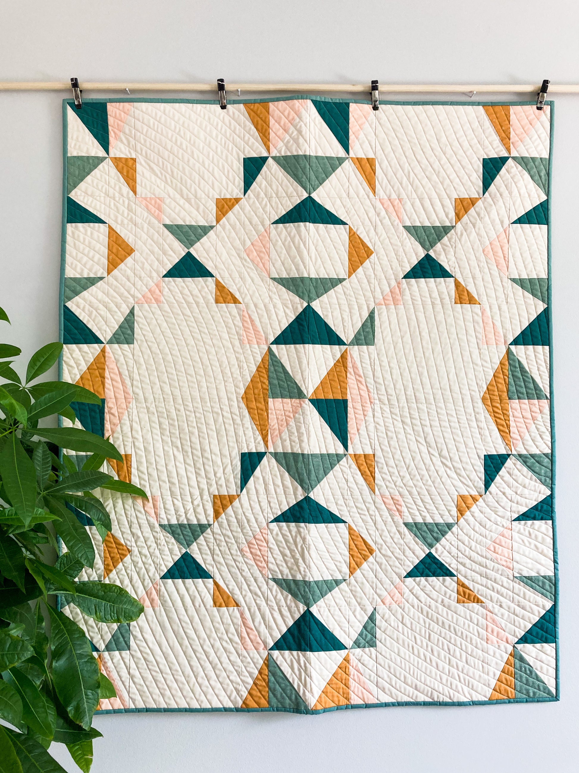 The Strickland quilt pattern is a striking geometric design that comes in 15 different options (and a bonus option)! The pattern is a great skill builder, featuring detailed step-by-step instructions to help guide you through all the different triangles.